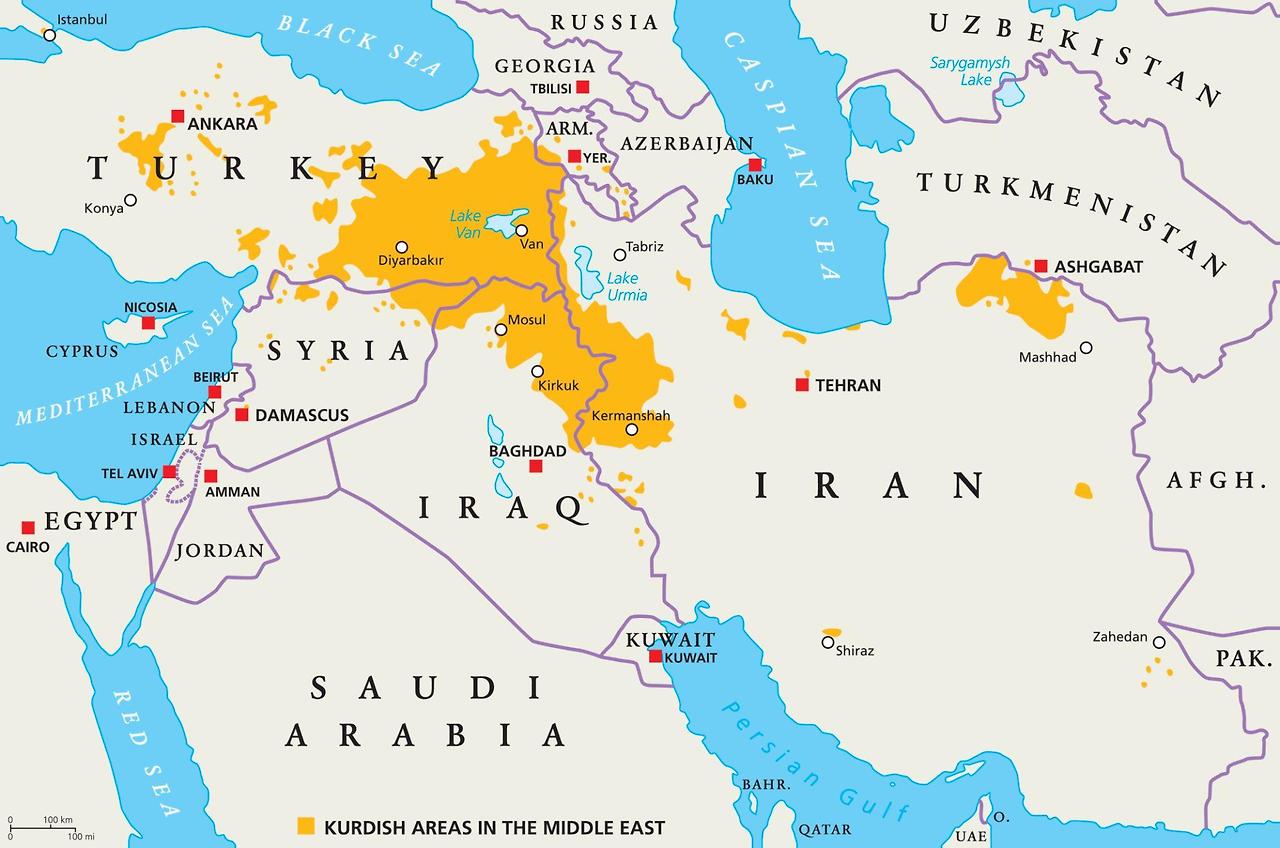 터키, 이란, 이라크, 시리아 등에 흩어져 살고 있으며 지난 수십 년 동안 강대국의 전략 속에서 여러 차례 전쟁에 동원되었습니다.
